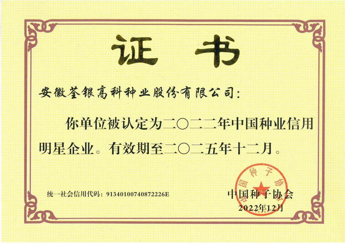 安徽荃銀高科種業股份有限公司是一家“以種業為核心、農業服務為延伸、探索和創新農業多元化發展”的現代高科技種業上市公司,證券代碼:300087。公司注冊資金9.47億元,系“中國種業領軍企業、農業產業化國家重點龍頭企業、國家高新技術企業、農業部首批農作物種子育繁推一體化企業、中國種業信用明星企業"。在國內控股子公司20多家,在國外設立分支機構4家,良種銷售至全國20多個?。ㄊ?、區),出口覆蓋20多個國家與地區,種業綜合實力、雜交水稻研發、推廣及海外業務規模均居全國種子企業前2位。